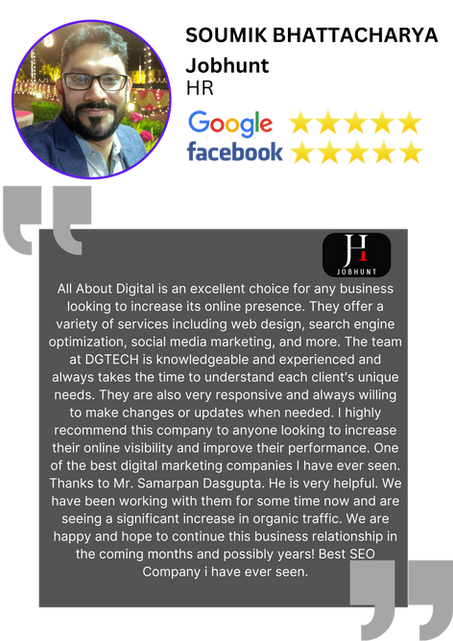 At Dasgupta Tech Solution, our digital marketing journey is rooted in a passion for innovation and a commitment to delivering unparalleled results. Established with a vision to transform businesses in the digital landscape, we bring a wealth of expertise and a dynamic approach to online marketing. Our team, comprised of seasoned professionals in the fields of SEO, social media, content creation, and more, works collaboratively to craft customized strategies that propel our clients to digital success. Guided by a mission to exceed expectations, we leverage cutting-edge technologies and industry insights to navigate the ever-evolving digital terrain. What sets us apart is not just our proficiency in driving online visibility and engagement but also our unwavering dedication to understanding the unique goals of each client. Whether you're a startup aiming to establish a robust online presence or an established brand seeking to amplify your digital footprint, Dasgupta Tech Solution, your trusted partner, serving national as well as global clients, is the dynamic realm of digital marketing.